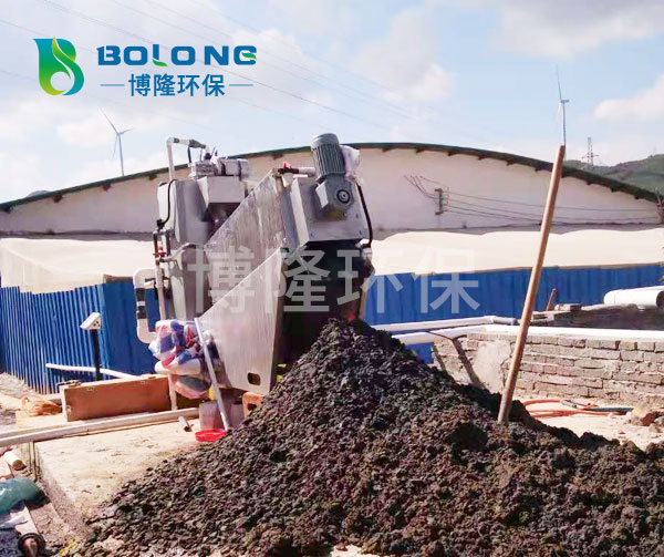 經過濃縮的污泥隨著螺旋軸的轉動不斷往前移動;沿泥餅出口方向,螺旋軸的螺距逐漸變小,環與環之間的間隙也逐漸變小,螺旋腔的體積不斷收縮;在出口處背壓板的作用下,內壓逐漸增強,在螺旋推動軸依次連續運轉推動下,污泥中的水分受擠壓排出,濾餅含固量不斷升高,終實現污泥的連續脫水。